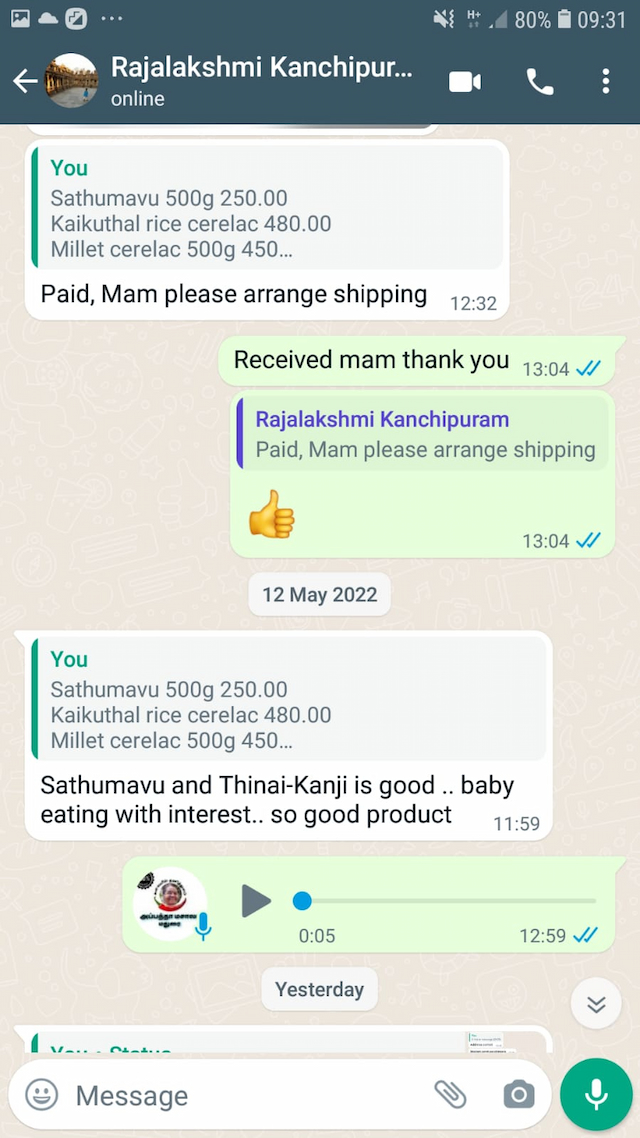 Since 2021, the Appatha store in Virudhunagar has been offering traditional methods of food grains to both elders and pregnant women, as well as babies. Their products include a health mix, fresh pure oil and hair oil, as well as old traditional rice.